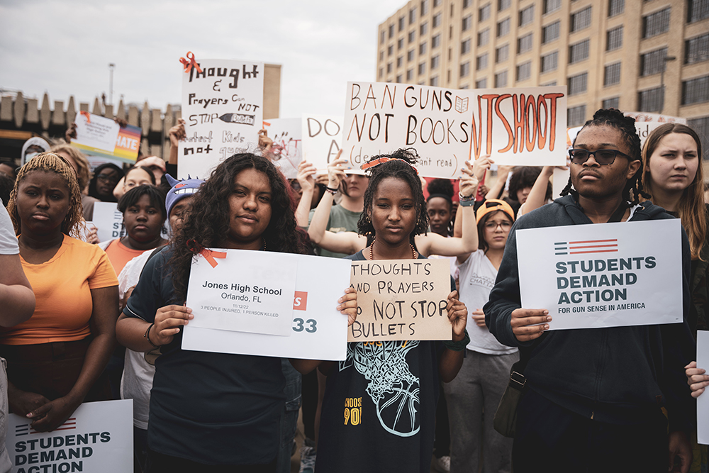 Students at Crosstown High School walked out of school in March 2023 and held a rally to protest lax gun laws in the wake of the shooting at The Covenant School in Nashville. (Photo: Andrea Morales | MLK50)