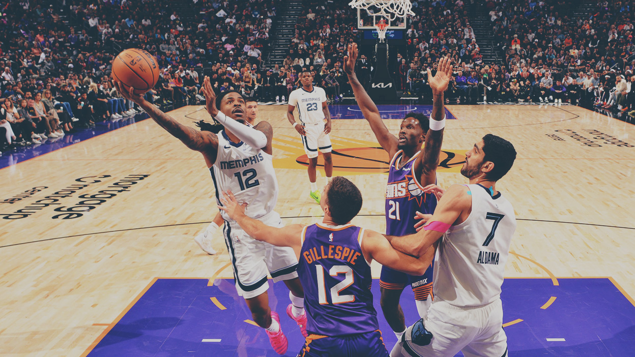 Ja Morant drives to the basket against the Phoenix Suns. (Credit: NBAE/Getty Images.)